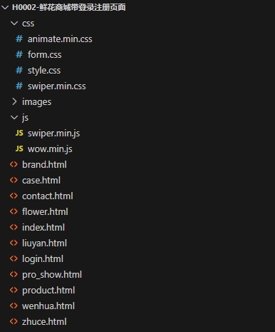 鲜花商城选题静态网页源码,一共11个页面,包含:首页轮播图、留言表单、下拉导航、二级页面和登录注册页面。
