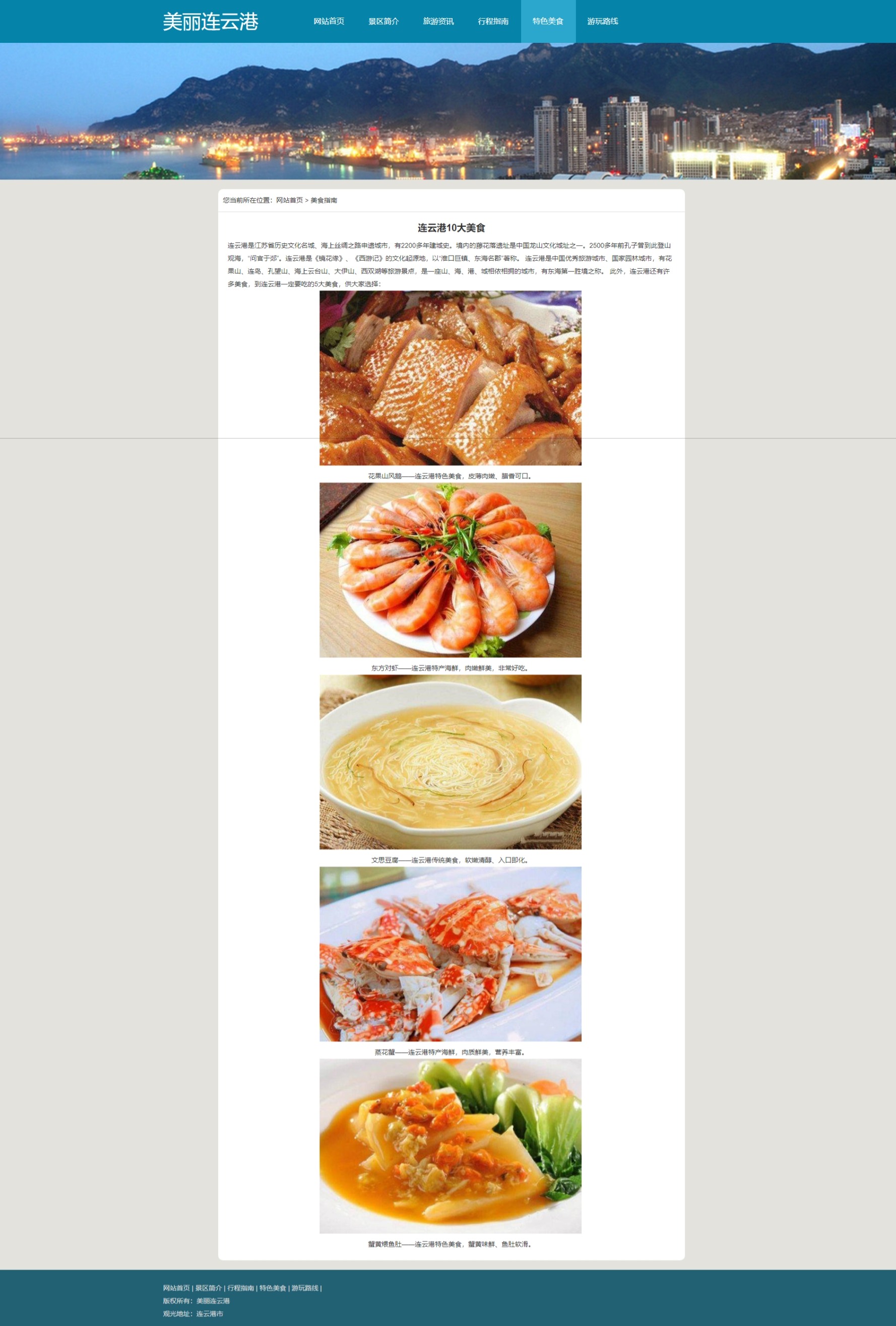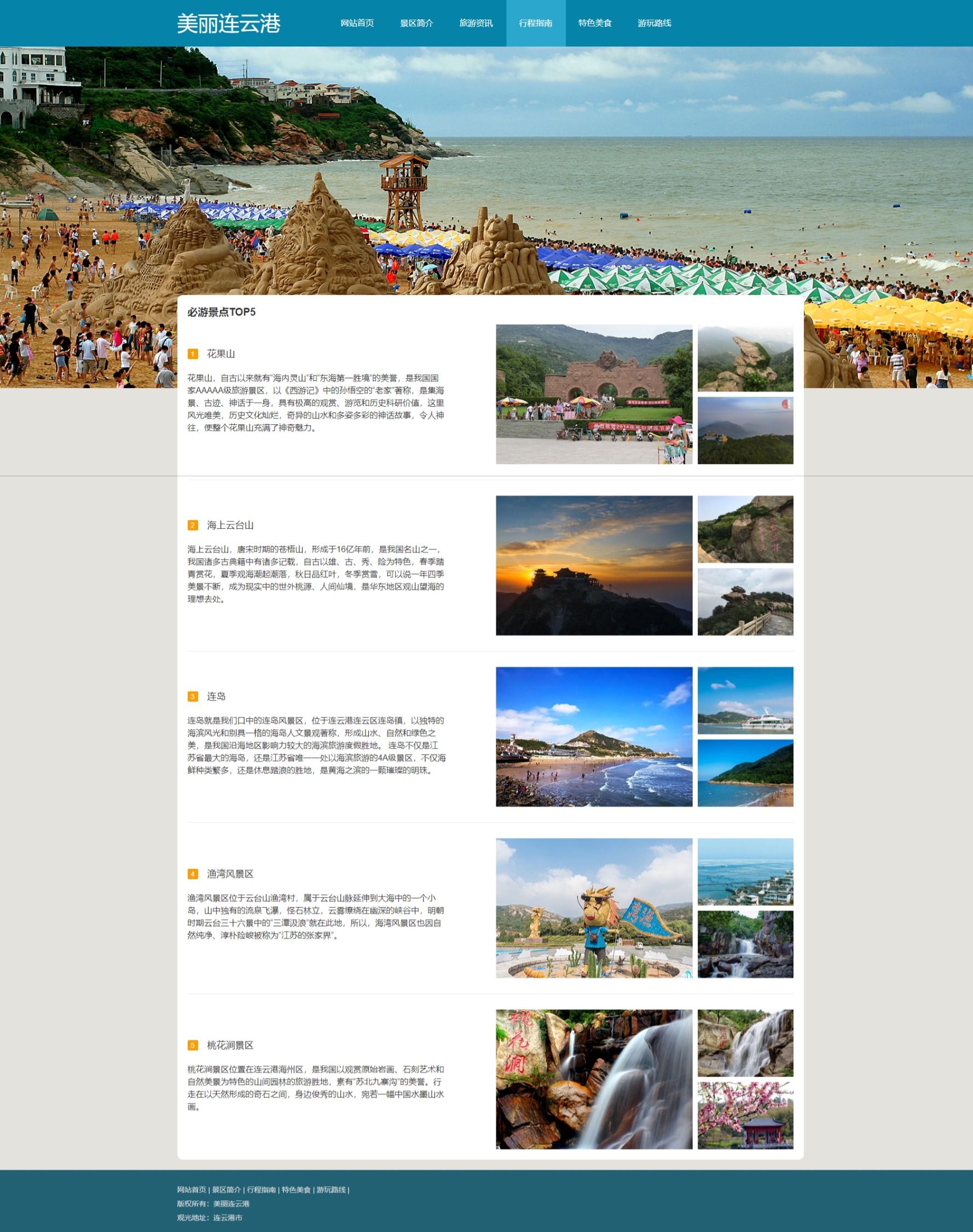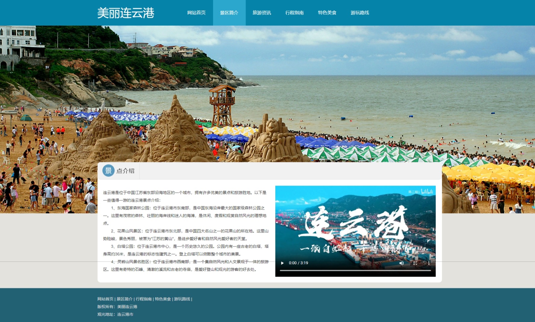 美丽连云港旅游网页,一共8个页面,包含:轮播图js和视频。