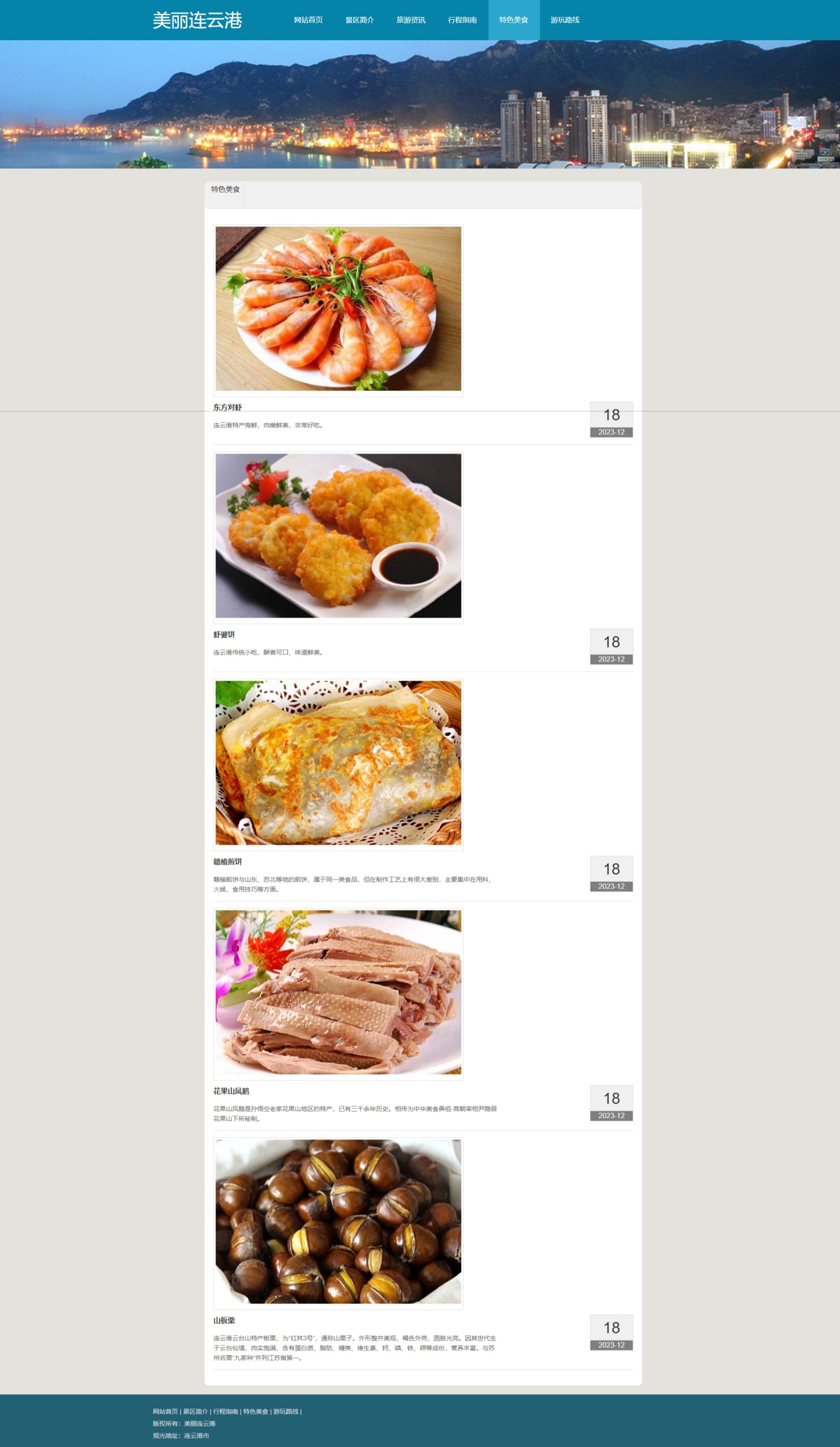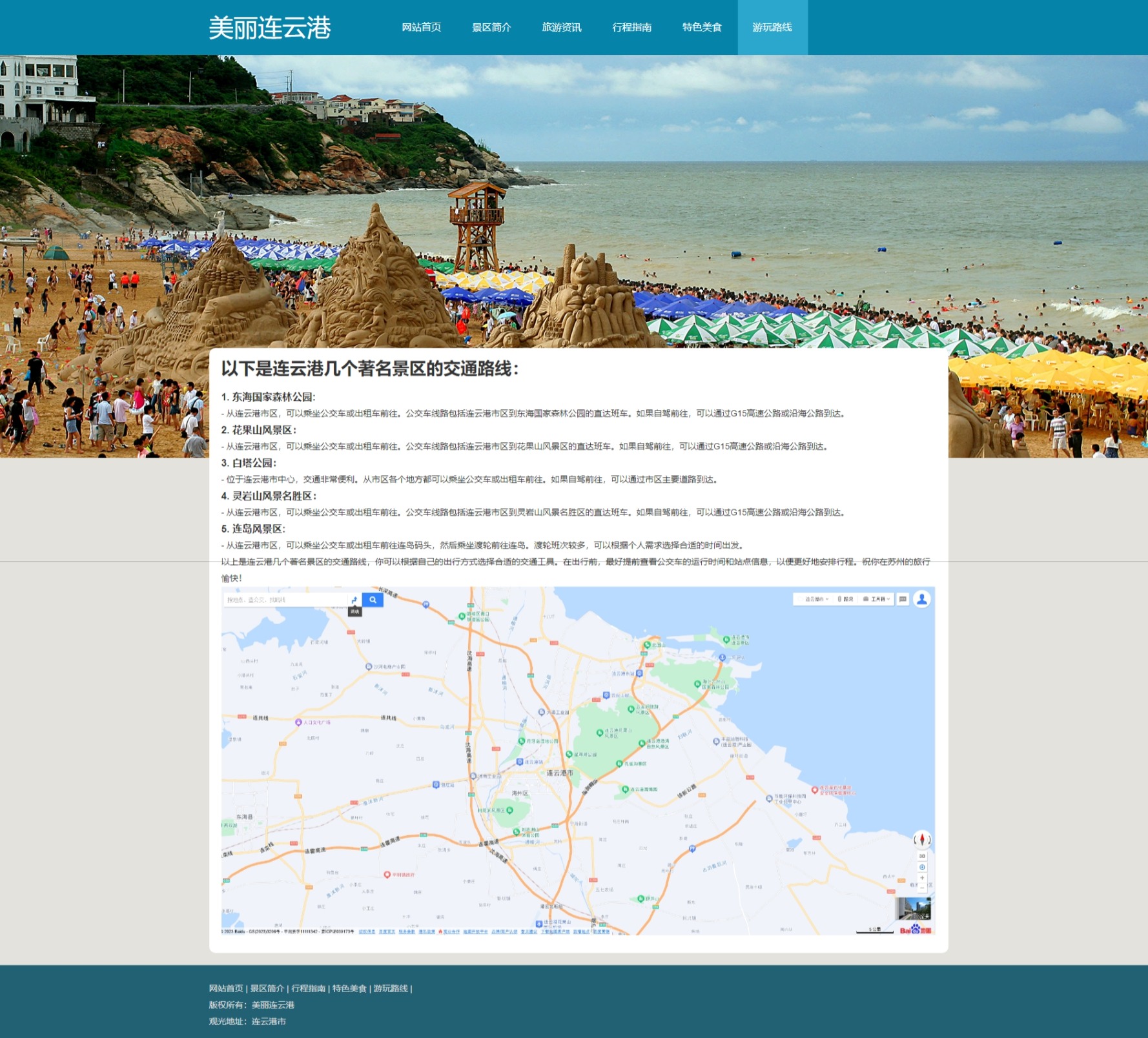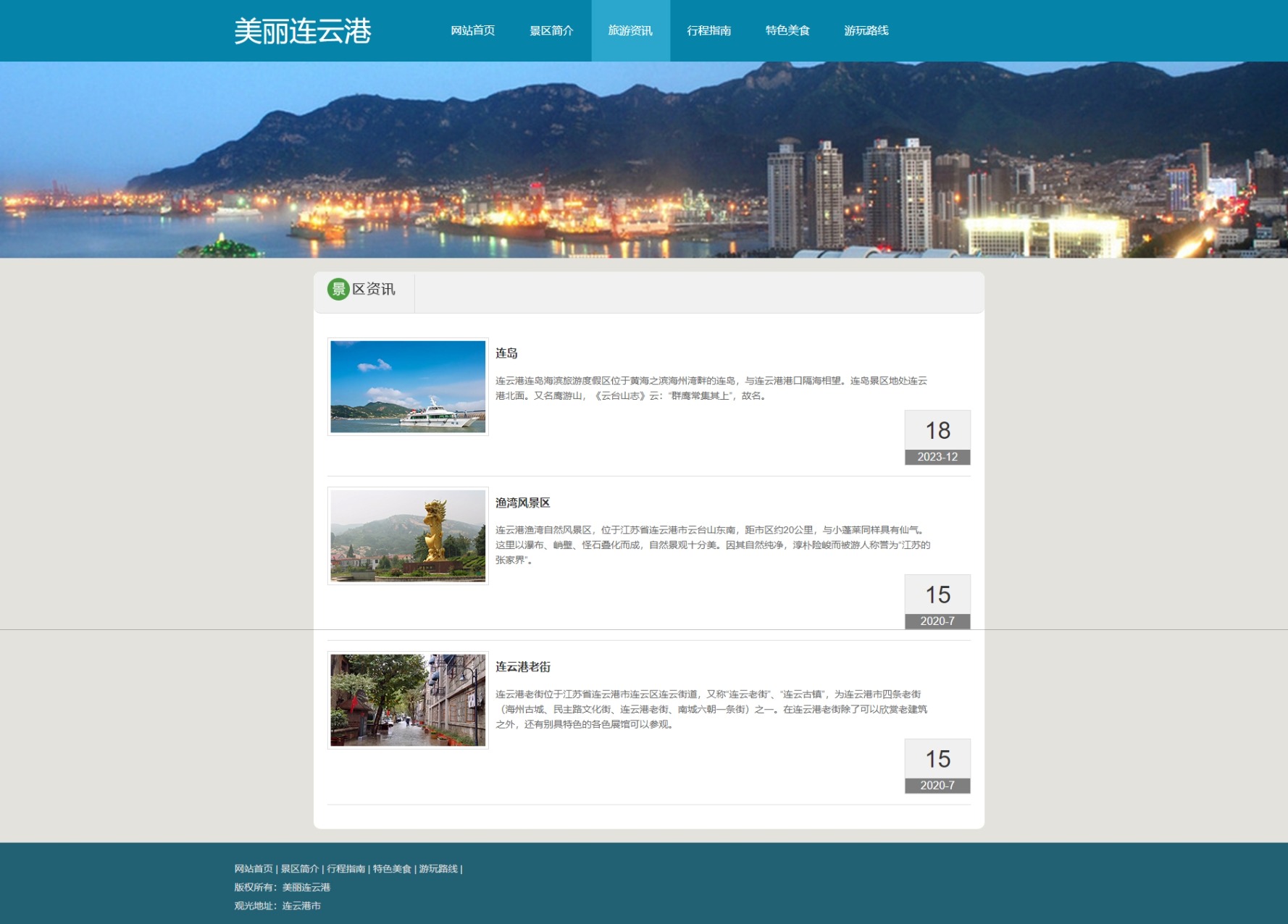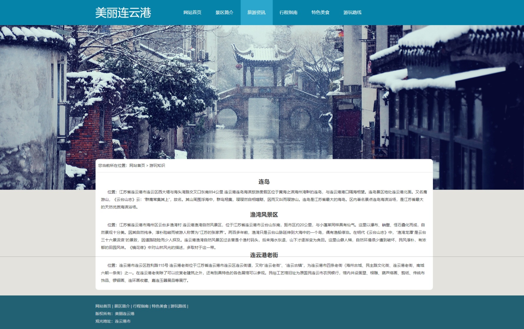 美丽连云港旅游网页,一共8个页面,包含:轮播图js和视频。