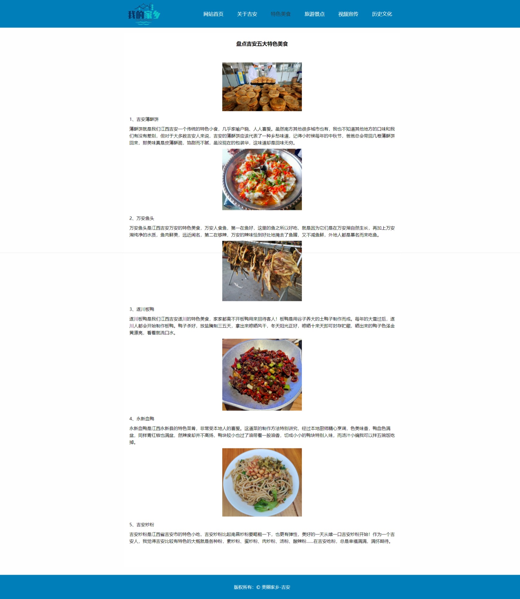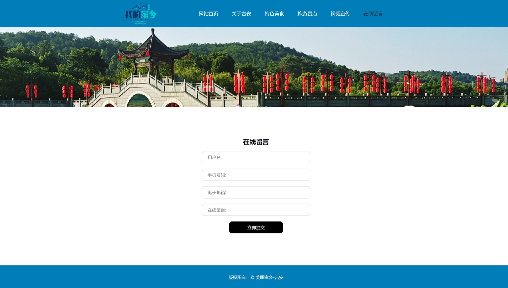 我的家乡吉安网页,一共7个页面,包含:首页轮播图、视频、留言表单。